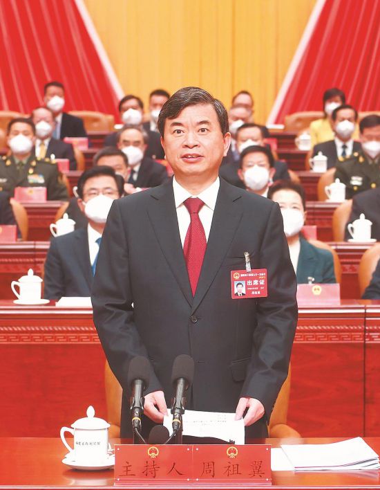 9时整,周祖翼宣布:省十四届人大一次会议开幕。全体起立,会场响起雄壮的国歌。
