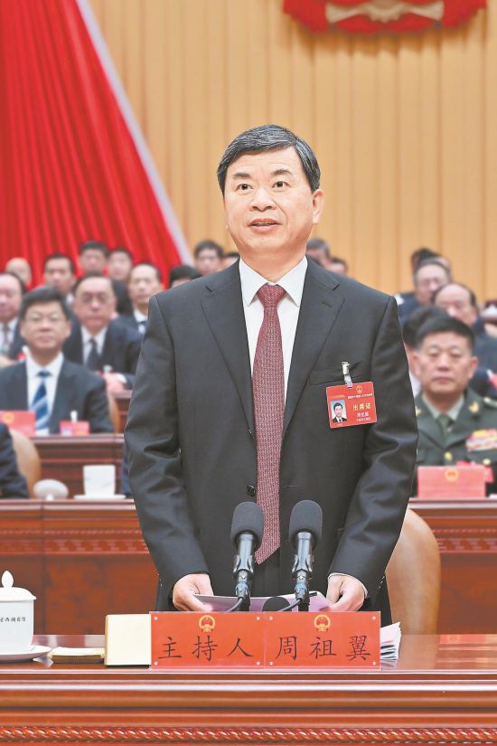 周祖翼宣布:省十四届人大三次会议开幕。记者 肖春道 摄