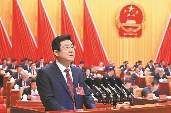 省长赵龙代表省人民政府向大会作政府工作报告。记者 吴恩儿 摄