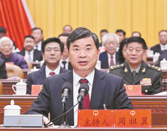 周祖翼宣布:省十四届人大二次会议开幕。记者 肖春道 摄
