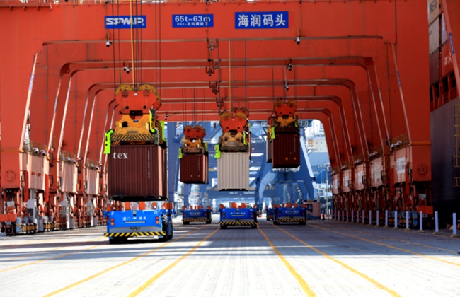 1��20�գ������ÿۺ���װ����ͷ�ֳ����ⱥ�ɫ���ŵ��զ����у���һ��40��װ��ӿ����ϻ�������ƽ��խ�����ϣ����ȵ������զ���ʻ������igv���ϣ���������ѳ���ͣ��һ̨�����ܻ��������̥ʽ���ŵ����档���ŵ��զ�ץȡ����ƽ�ȵؽ�igv�ϵļ�װ��ŵ�ָ���ij���λ�ϡ�