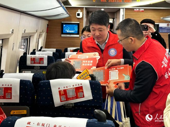 人民网厦门2月3日电 (记者张萌、陈博)2月2日是春运首日,当天上午9时40分许,随着一声鸣笛,贴着“就·在厦门 业兴未来”字样的就业服务主题列车g1674缓缓驶离厦门北站,也由此拉开2026年厦门“春风行动”的序幕。