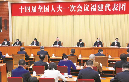 福建代表团团长、省委书记、省人大常委会主任周祖翼主持会议。福建代表团副团长、省委副书记、省长赵龙,于伟国、李钺锋、黄志贤等代表参加。
