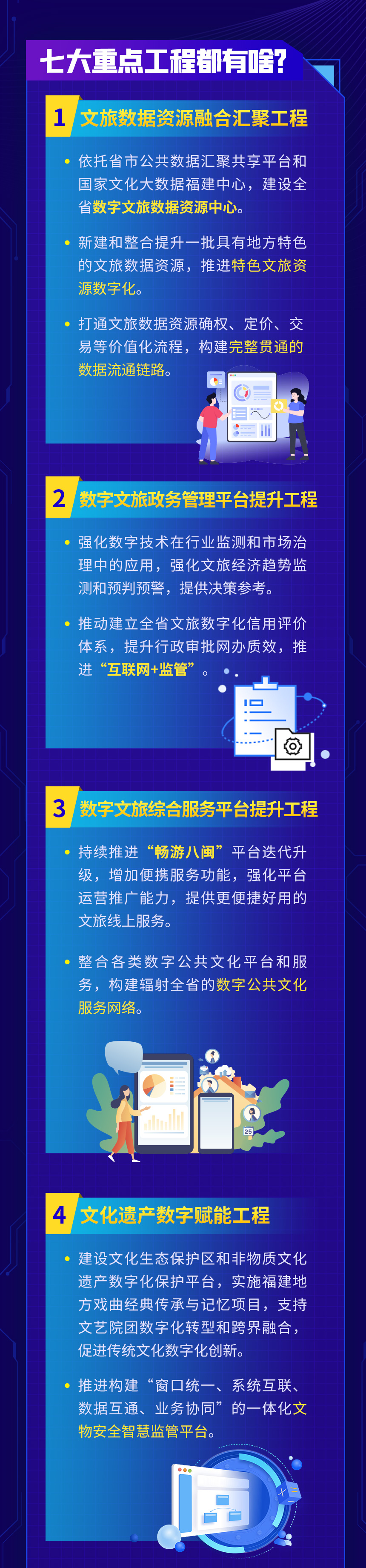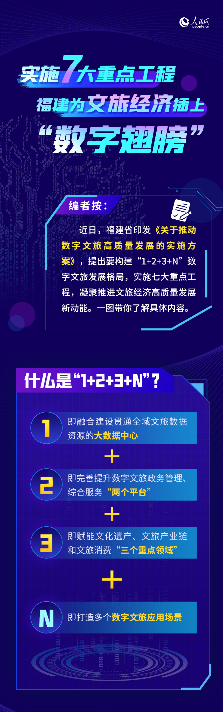 近日,福建省印发《关于推动数字文旅高质量发展的实施方案》,提出要构建“1 2 3 n”数字文旅发展格局,实施七大重点工程,凝聚推进文旅经济高质量发展新动能。一图带你了解具体内容。