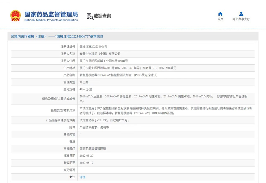 ����������5��24�յ� �������١���ӯ���ݸ���ʡҩ�����ϣ��5��20�գ�����ʡ̩�������ѧ���й�������˾��2019����״������2019-ncov���������լ��у�rt-pcrӫ��̽�뷨���������ű�̫����ƽ��ɷ�����˾������״������2019-ncov����ԭ����լ��у��������2����ʒͬʱ����˹���ҩ���ע������