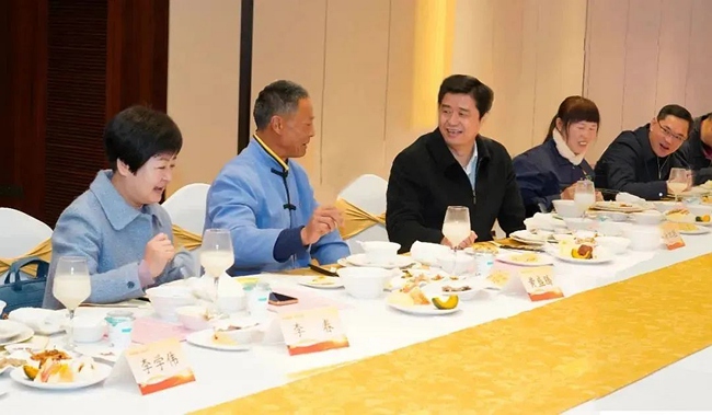 三明市领导和农民工代表们围坐在一起,边吃边聊,认真听取大家的意见建议,不时插话交流。图片来源:三明日报