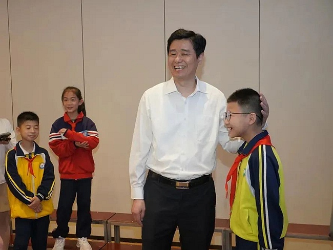 三明市委书记余红胜、市长李春与留守儿童代表共进早餐。周志鸿摄