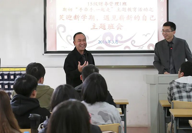 时任厦门理工学院党委书记黄如欣以班导师身份与同学们互动。图片来源:厦门理工学院