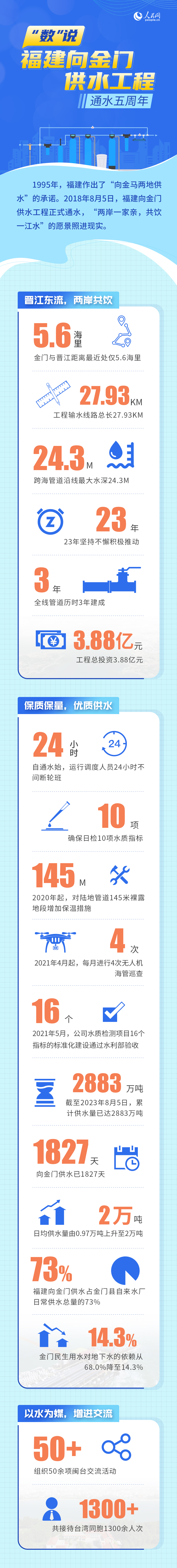 时值福建向金门供水工程五周年之际,让我们用一组数字回顾一衣带水的两岸真情。