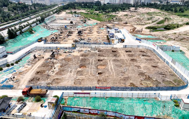 工地上,机器轰鸣,吊机、打桩机等紧张作业,一派忙碌景象……