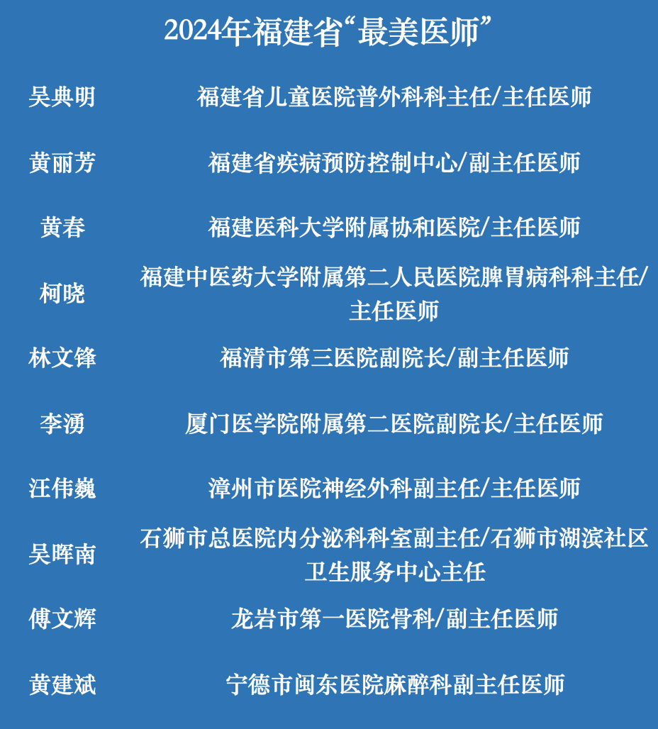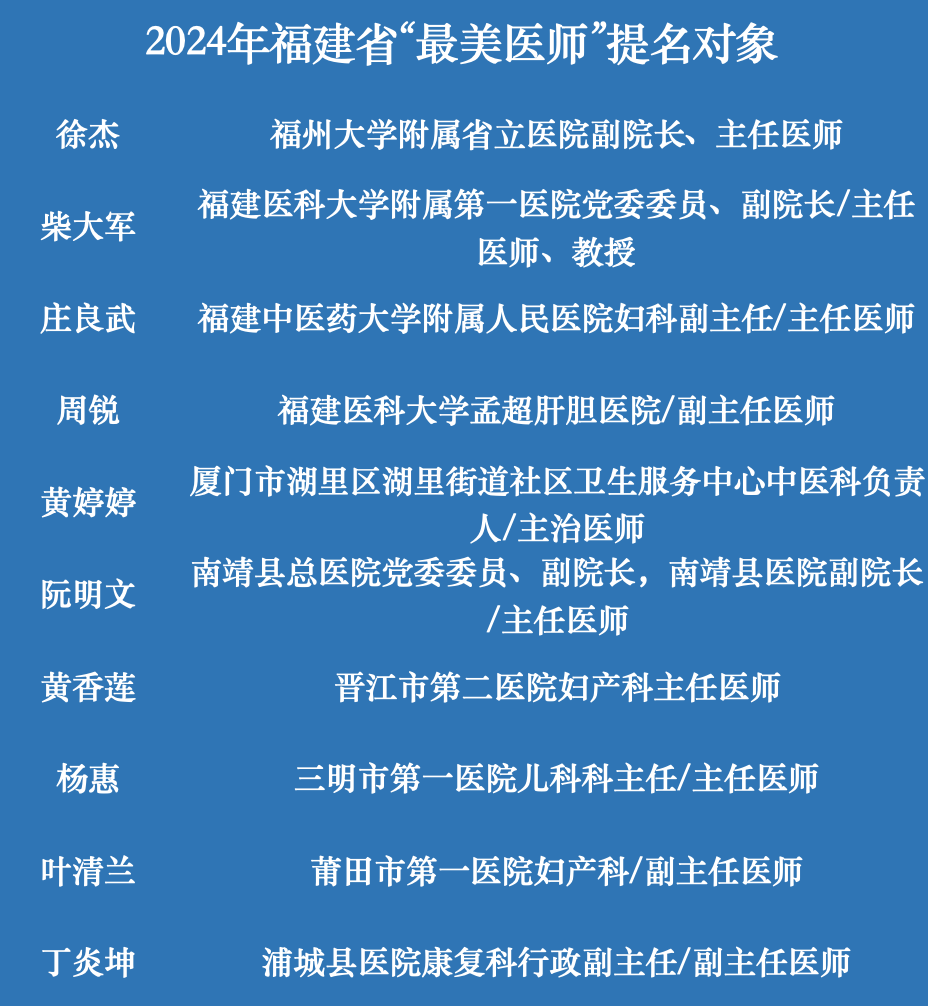 附:2024年福建省“最美医师”、2024年福建省“最美医师”提名对象名单
