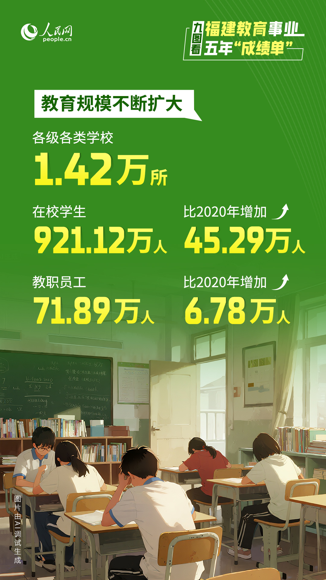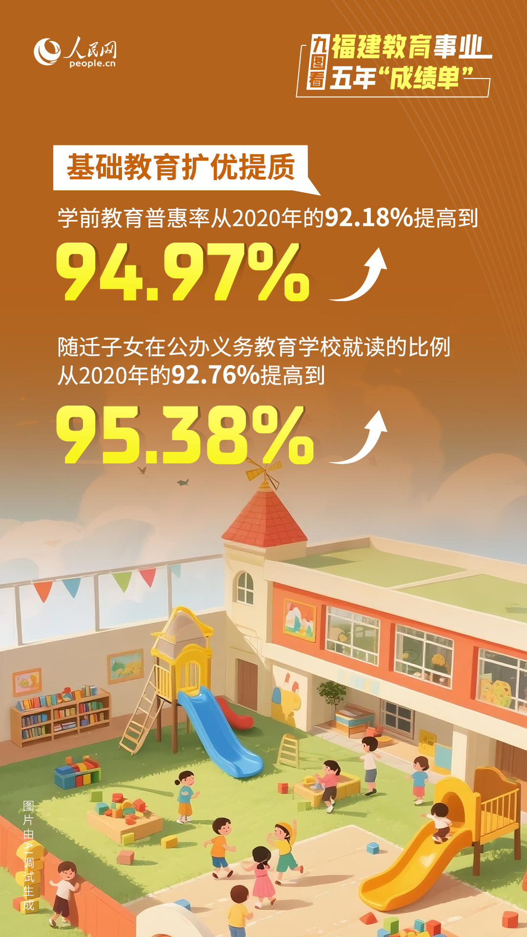 教育支出是全省财政第一大支出;新建、改扩建或提升公办幼儿园804所;学前教育普惠率从2020年的92.18%提高到94.97%……26日上午,福建省政府新闻办召开“高质量完成‘十四五’规划,在中国式现代化建设中奋勇争先”系列主题新闻发布会(第三场),会上介绍了“十四五”期间福建教育事业发展情况,一组海报带你速览!