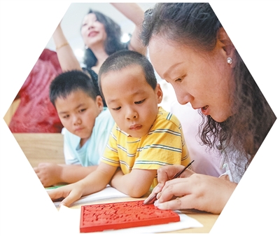 重庆两江新区大竹林社区学院举办文化艺术游园会活动,小朋友们在观看雕漆技艺。 |