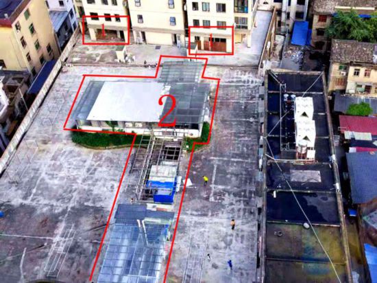 ������������¼�էс�������ƽ̨�ϣ������տ��ĵط�����υ����ͼ�к��2��ס�ڼܿղ�ڶ����ҵ��υ�����ɹ⾮���ӹǣ�����סլ¥�µļܿղ��֣�ͼ�к��1��ҳ��������υ����ۡ�с��ҵ����ͼ