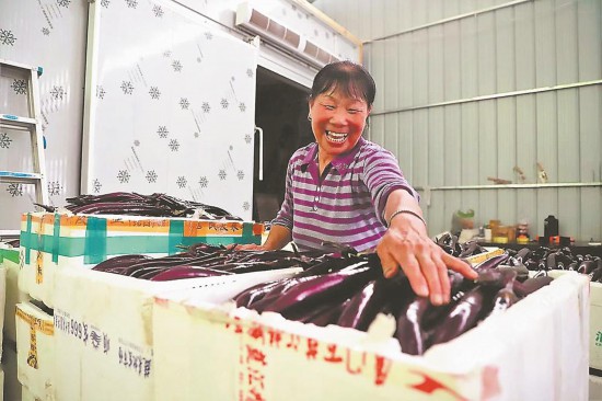近日,在周宁县礼门乡菊美专业合作社,工人正忙碌着打包茄子。 林子杰摄