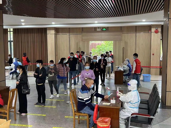 “大家间隔一米排好队,不要着急,核酸检测样本采集很快。”在核酸检测现场,医务人员登记、消毒、取样、归类;接受检测的人员面戴口罩,一个接一个井然有序地保持安全间距等候检测;一旁的后勤人员有序协助,只要几分钟检测采样就已经完成,随后接受检测的人员自行快速离开。