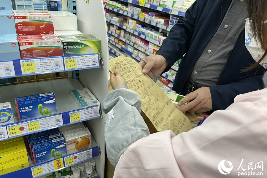 在鼓楼区一家社区药房,一位阿姨比照着手机里记下的十余种药品清单来到柜台前购药,给孩子准备的、预防感冒的、针对发烧咳嗽等症状的药品很快布满了柜面。
