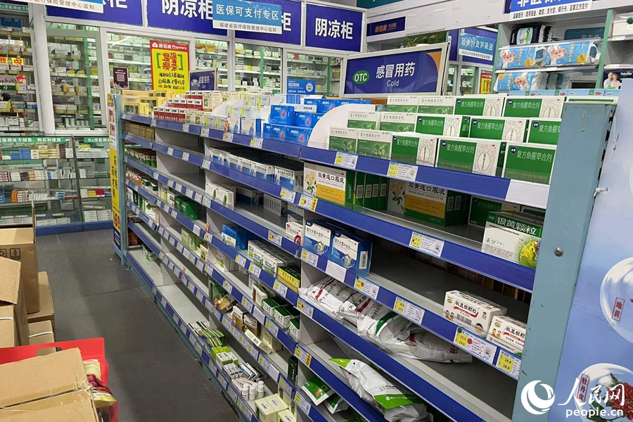 人民网福州12月13日电 (林盈)“有连花清瘟吗?”“有布洛芬吗?”这是近期在福州药店里听到最多的问询。随着防疫相关政策的调整,连花清瘟等常用感冒药等成为市民争相购买的储备药品,致市面上部分“热门药”“一药难求”。12日,记者走访了福州十多家药店了解情况。