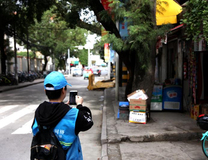 网格员正在用手机“随手拍”发现的问题。福州市鼓楼区城市运行指挥中心供图