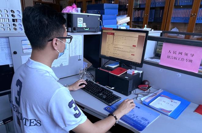 泉州石狮市信访局工作人员办理人民网“领导留言板”事项。泉州市信访局供图
